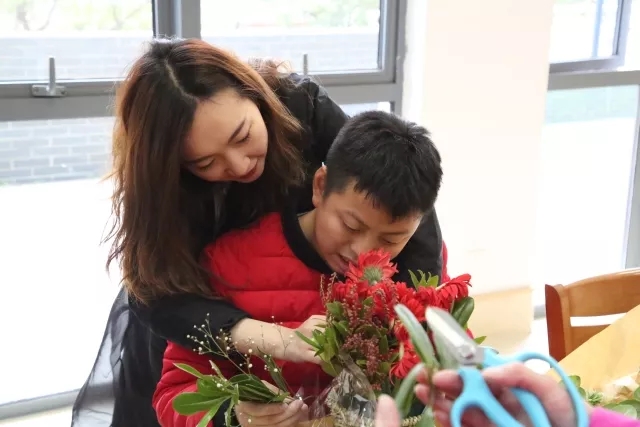 進(jìn)到福利院里,李良濟(jì)芍花會(huì)的會(huì)員們拿出了準(zhǔn)備好的五彩鮮艷的花朵,教小朋友們插花。面對(duì)色彩鮮艷的花,小朋友的臉上都掛滿了欣喜。在她們的鼓勵(lì)下,完成了插花,并展現(xiàn)出了他們不俗的審美,他們親手制作的花點(diǎn)綴了冬季的福利院。