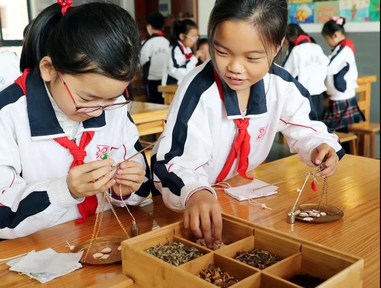 學(xué)生們在聽取有關(guān)中藥知識后,開始稱重艾葉、丁香、金銀花等6種中藥材,然后塞進(jìn)布包,一個(gè)小小的驅(qū)蚊包就做成了。