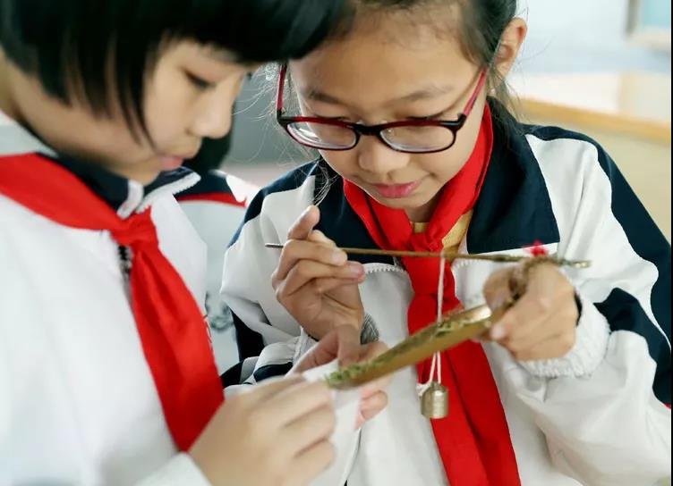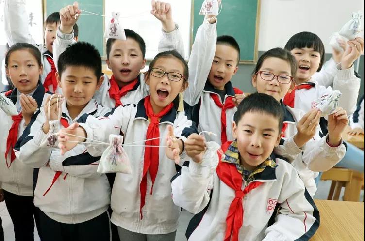 姑蘇區(qū)滄浪實(shí)驗(yàn)小學(xué)校的三年級學(xué)生,在我們工作人員的指導(dǎo)下學(xué)做中藥驅(qū)蚊包。