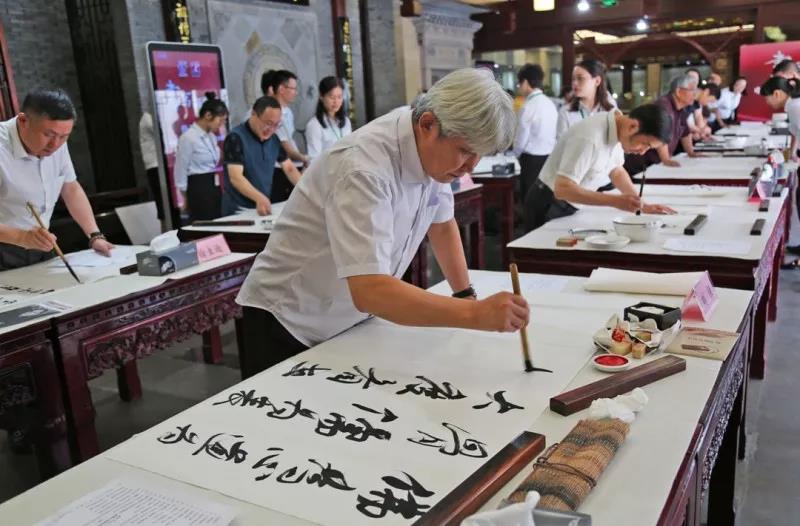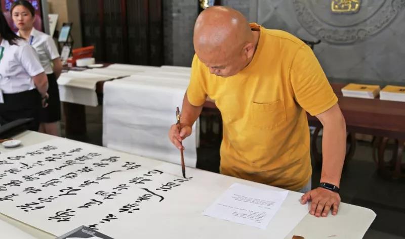 7月14日,為紀(jì)念李時珍誕辰500周年,李良濟(jì)攜手中國書法家協(xié)會中央國家機(jī)關(guān)分會舉辦一場主題為“書寫新時代”的大型書法活動。中國書法家協(xié)會中央國家機(jī)關(guān)分會志愿者服務(wù)團(tuán)的10位書法家結(jié)合中藥元素進(jìn)行了一次別開生面的創(chuàng)作。墨香藥香氤氳匯合,帶來了濃濃的文化韻味。