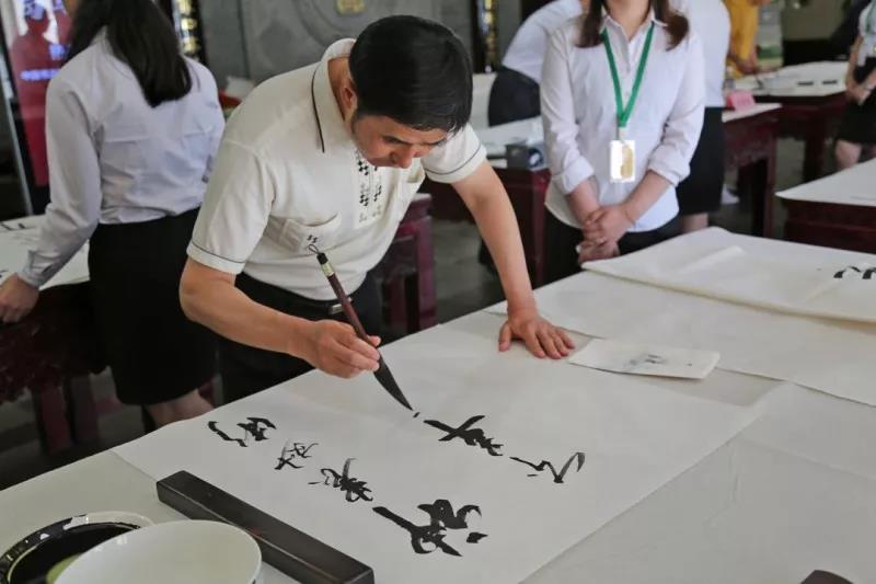 當(dāng)天,中國書協(xié)中直分會張飆會長、中國書協(xié)副主席毛國典、中國文聯(lián)書法藝術(shù)中心主任劉恒等書法界大師均來到現(xiàn)場。對于他們來說,在撲鼻的中藥香氣中的李良濟(jì)創(chuàng)作也是一次新奇的體驗。