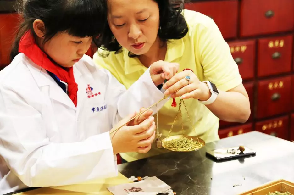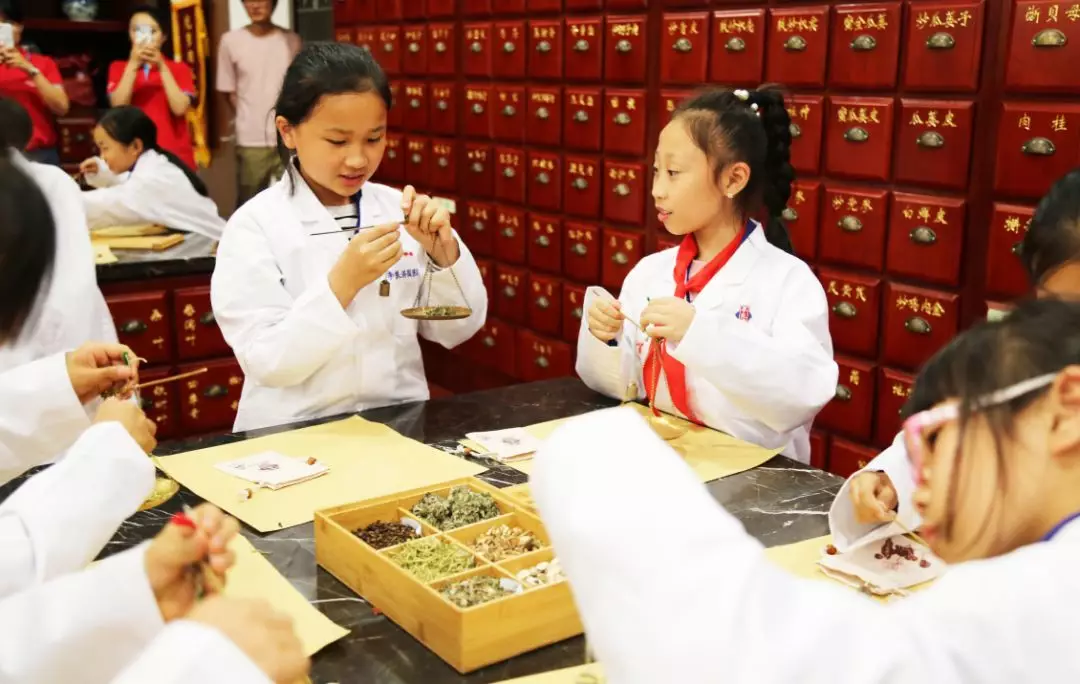緊接著,學生們換上“白大褂”,開始了“小小中藥師”的體驗活動。