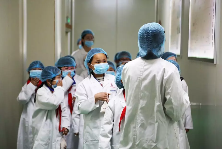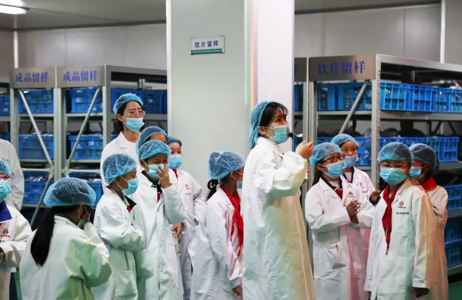 隨后,學生們來到了煎制服務中心。由于煎制服務中心要確保衛(wèi)生無污染,所以進入之前,學生們戴上了一次性的口罩、帽子和鞋套。