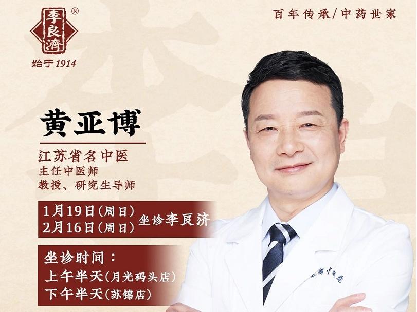 一號(hào)難求的名醫(yī)來啦!江蘇省名中醫(yī)黃亞博主任,將坐診李良濟(jì),可以提前掛號(hào)預(yù)約