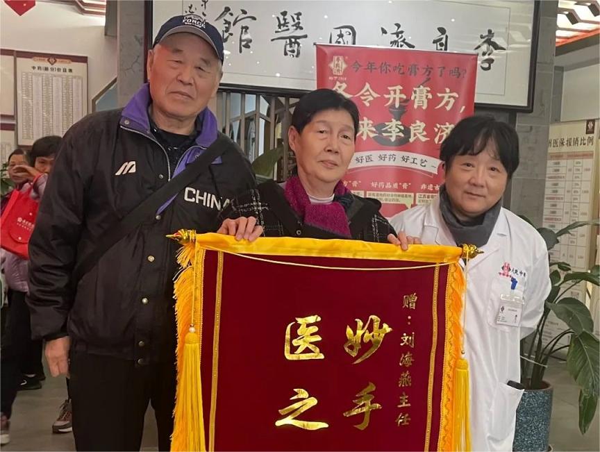 80歲臥床老人被治愈,送面錦旗給李良濟劉海燕主任誠表謝意