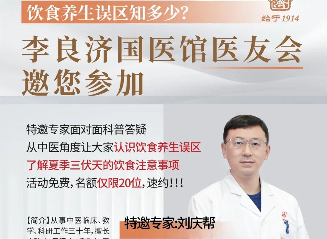 為關(guān)懷大眾身心健康,搭建醫(yī)生與市民朋友的交互平臺,7月2日(周日)李良濟國醫(yī)館特邀南京中醫(yī)藥大學(xué)副教授劉慶幫,以“飲食養(yǎng)......