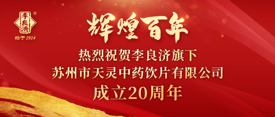 熱烈祝賀李良濟旗下蘇州市天靈中藥飲片有限公司成立20周年