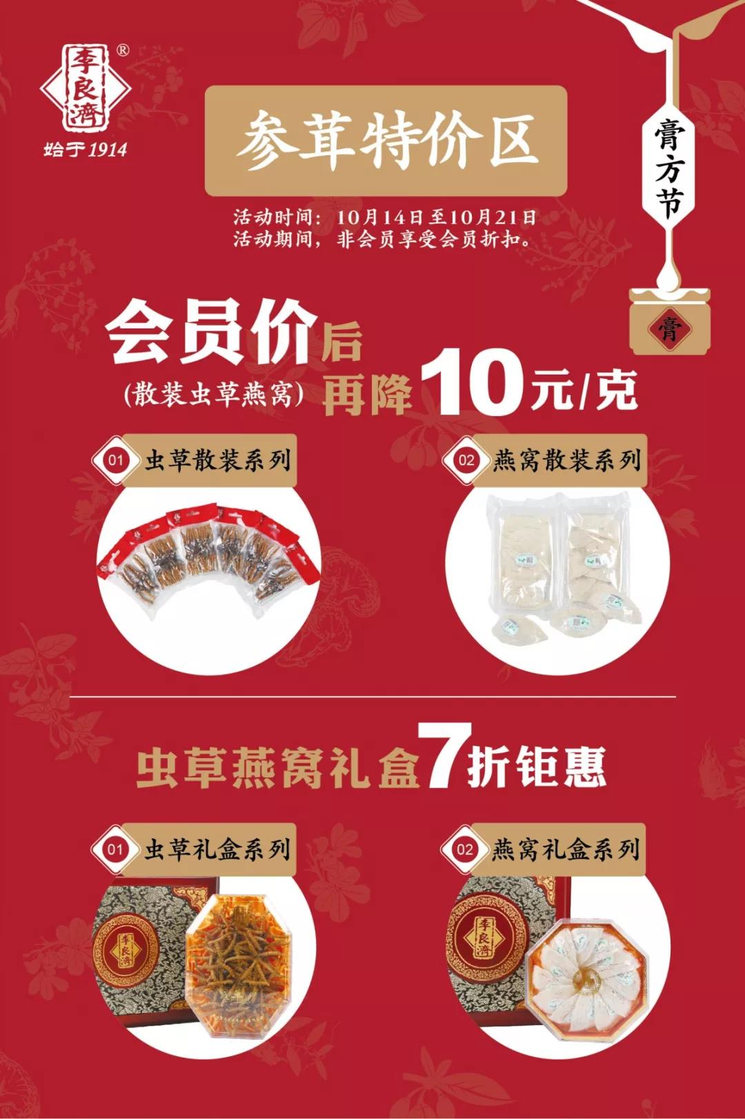 2018李良濟冬令滋補養(yǎng)生節(jié)同步啟動,李良濟也將開啟本年度巨大優(yōu)惠回饋新老客戶,而且進店就有好禮相送!佳品薈萃,總有你需要的!