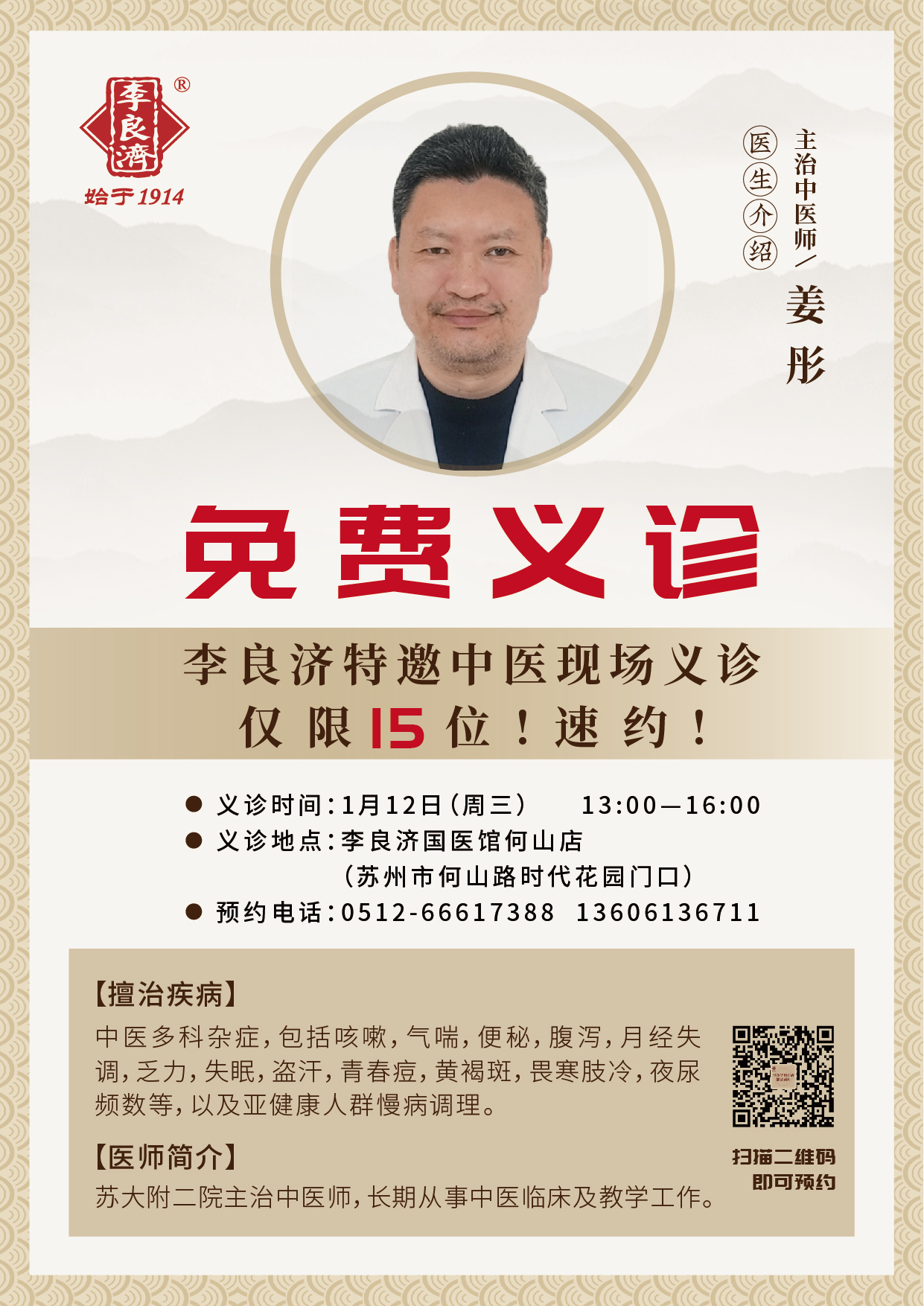 免費(fèi)義診來(lái)啦!1月12日李良濟(jì)特邀中醫(yī)現(xiàn)場(chǎng)義診!名額有限,速約!